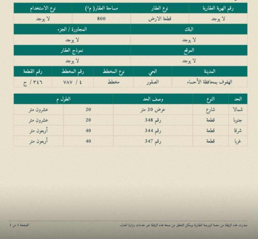 التفاصيل | الصقور (878/4) 268/ب | المساحة1,000م شارعنافذ10* مواقف *نافذ 10 | السعر750,000.00 20/12/2025 |