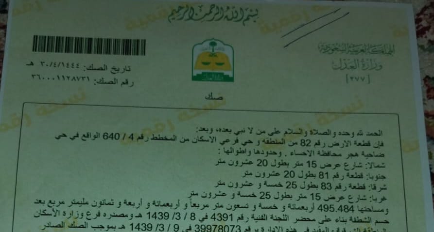 التفاصيل | مخطط التعاون ( الاسكان ) 640/4 245/أ | المساحة500م شارع30*15 | السعر340,000.00 05/02/2026 |