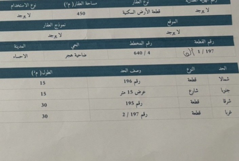 التفاصيل | الضاحية الحي السادس (640/4) 1/197/أ | المساحة450م شارع15 | السعر على السوم 04/04/2026 |